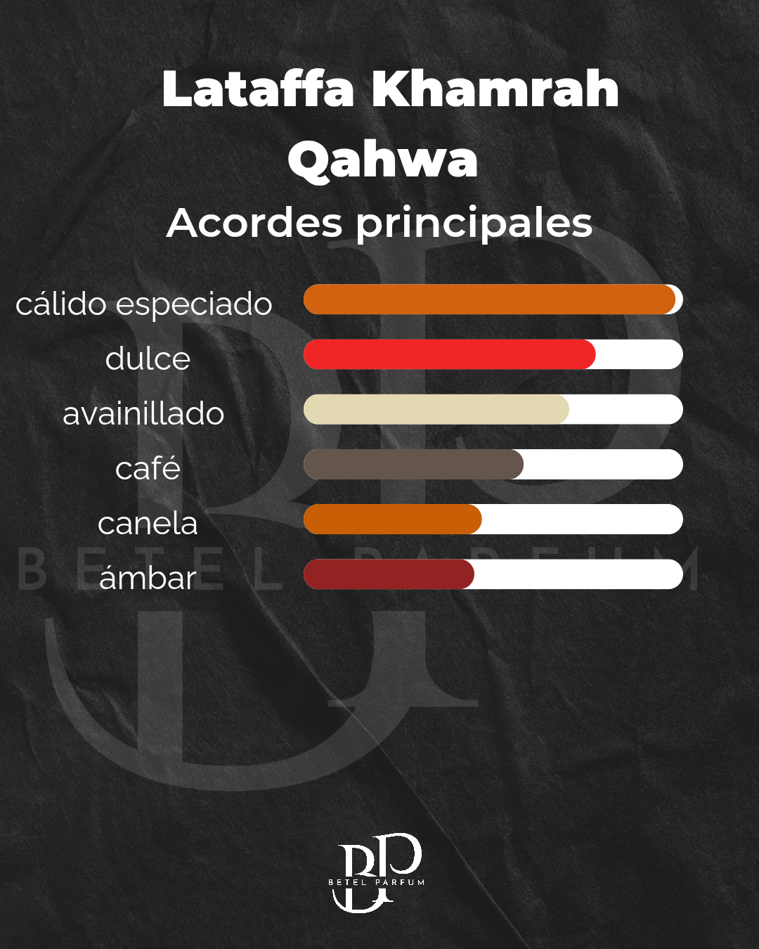Khamrah Qahwa es la fragancia perfecta para los amantes de los aromas gourmand con un toque distintivo y un carácter único.